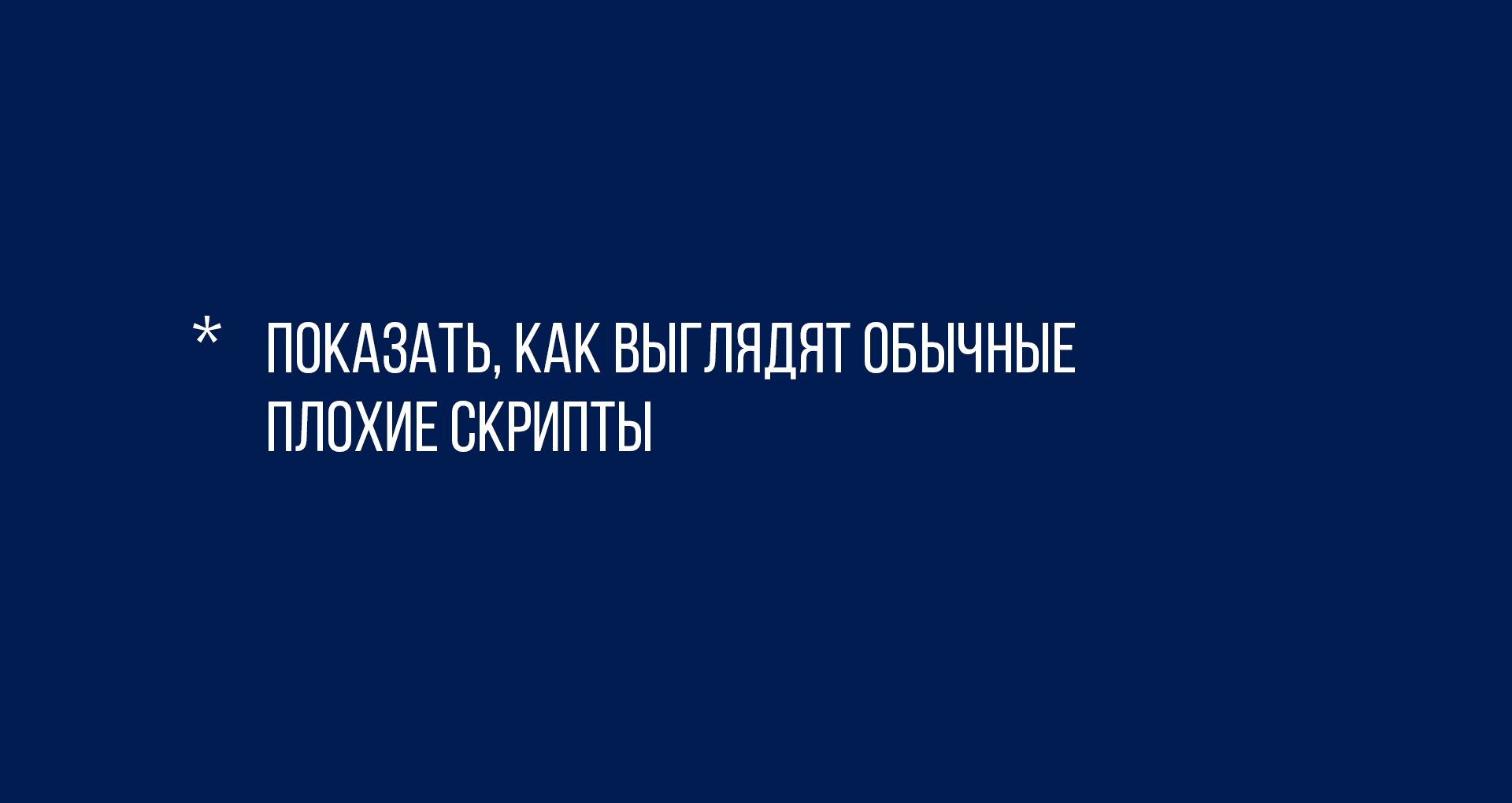 Когда дело доходит до реальных разговоров – 99% скриптов просто разваливаются, потому что они не продуманы и не прописаны на множество шагов вперед.